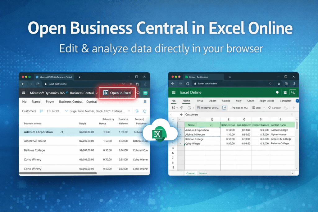 Business Central: Open in excel in web browser (Excel Online version).