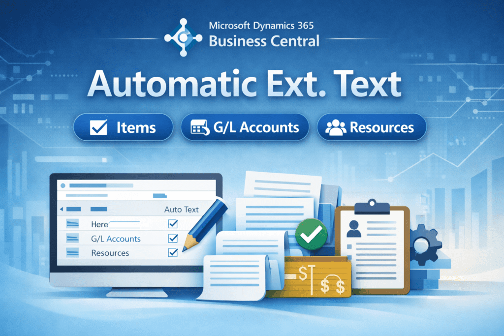 Business Central: Automatic Ext. Text on Items, G/L Account & Resource.