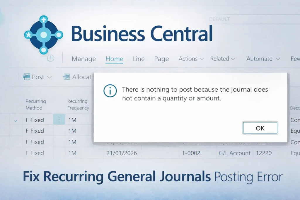 Dynamics 365 Business Central: There is nothing to post because the journal does not contain a quantity or amount when posting the Recurring General Journals.