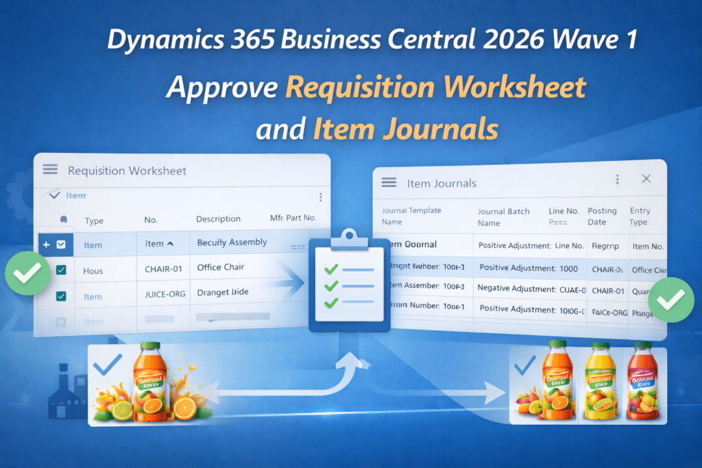 Dynamics 365 Business Central 2026 Wave 1 (BC Version 28): Approve Requisition Worksheet and Item Journals. Hi Folks, With Dynamics 365 Business Central 2026 Wave 1 (BC Version 28) Microsoft added a new feature of approval on requisition worksheet and item journal. This feature helps to control incorrect or accidental inventory posting. It works like the […]