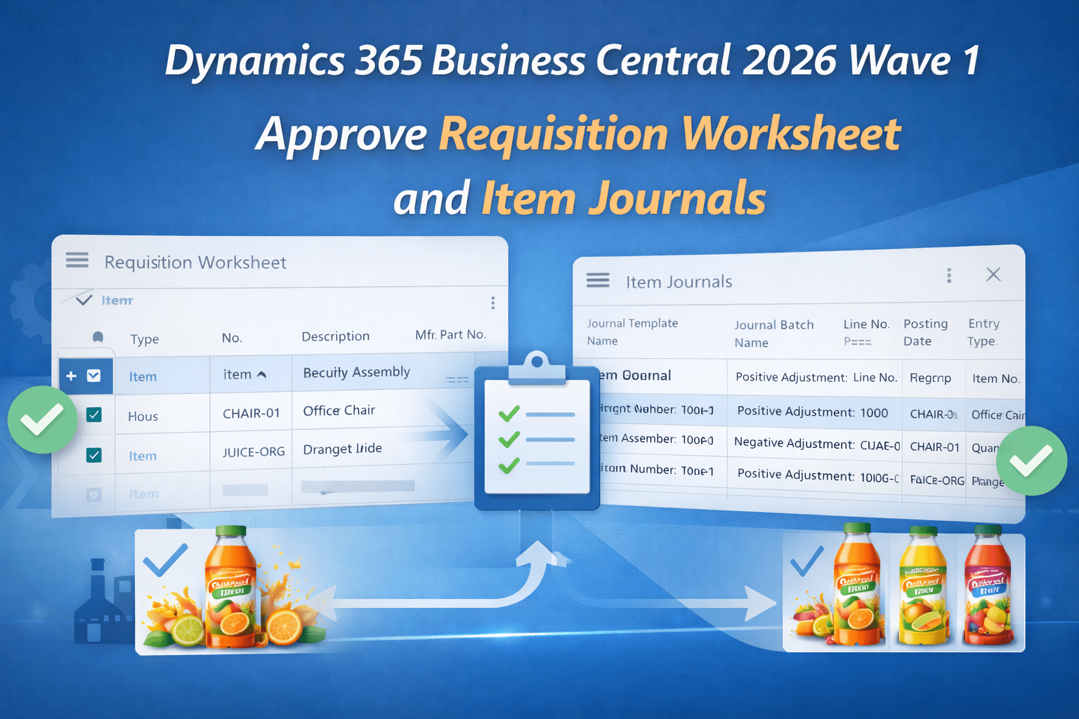 Dynamics 365 Business Central 2026 Wave 1 (BC Version 28): Approve Requisition Worksheet and Item Journals.